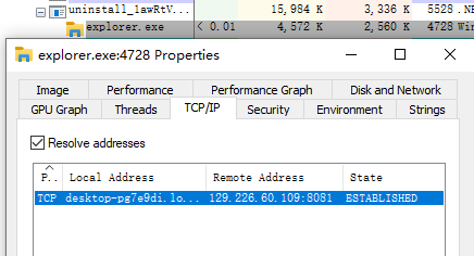 已经注入成功的恶意代码会连接远程地址,IP于端口为: